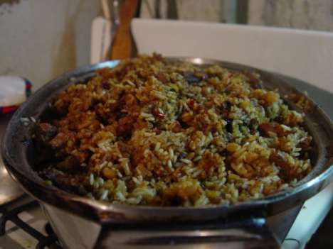 Когда рис будет готов (взятая в щепоть рисинка должна без усилий растираться двумя пальцами, но не расползаться), а вода выкипит - выключите огонь, плотно закройте казан крышкой, засеките время и сядьте на пороге кухни чтобы не допускать в нее домашних и гостей. Ровно полчаса казан с пловом ни в коем случае нельзя открывать. Что бы ни случилось - пожар, наводнение, землетрясение, плач голодных детей и жен - ничто не должно заставить вас открыть крышку. Под ней - тайна.